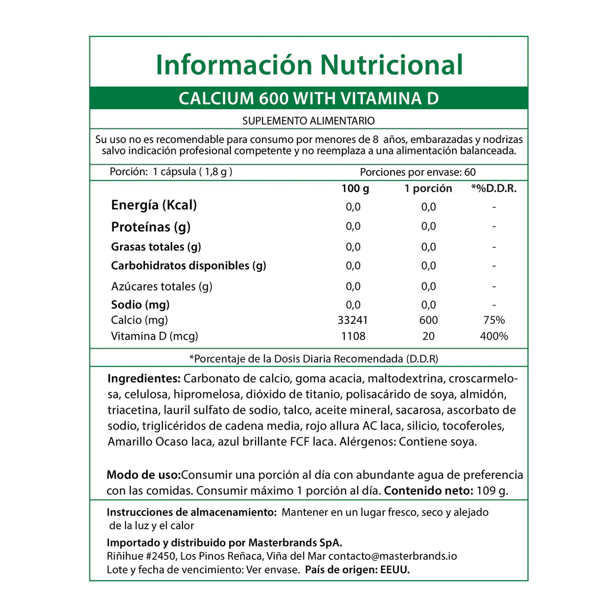 Alérgenos: Contiene soya.
